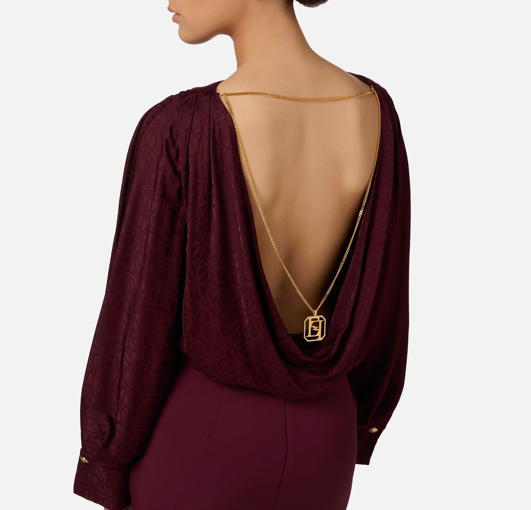 Camicia body in raso jacquard con collana