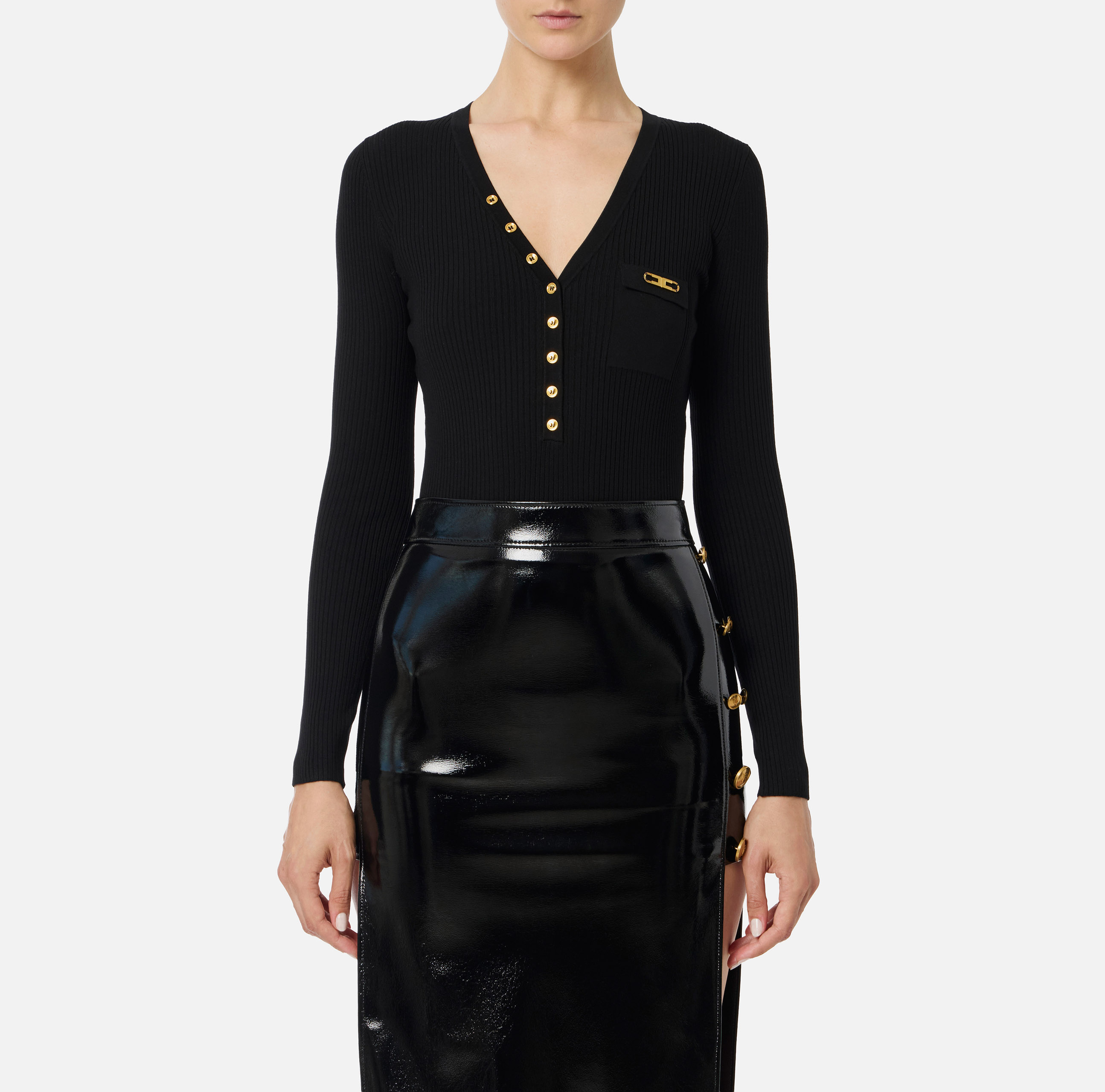 Maglia a costine con taschino