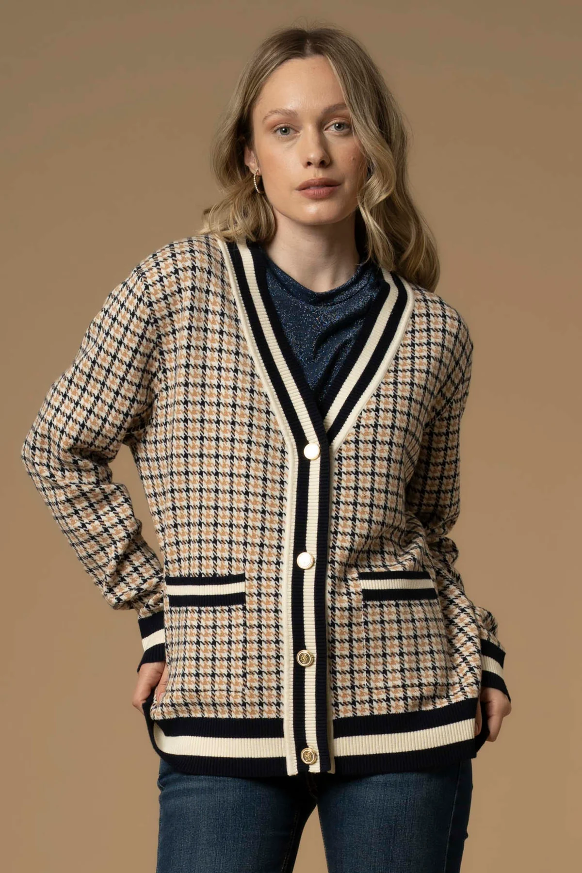 Maglia con bottoni e profili in contrasto